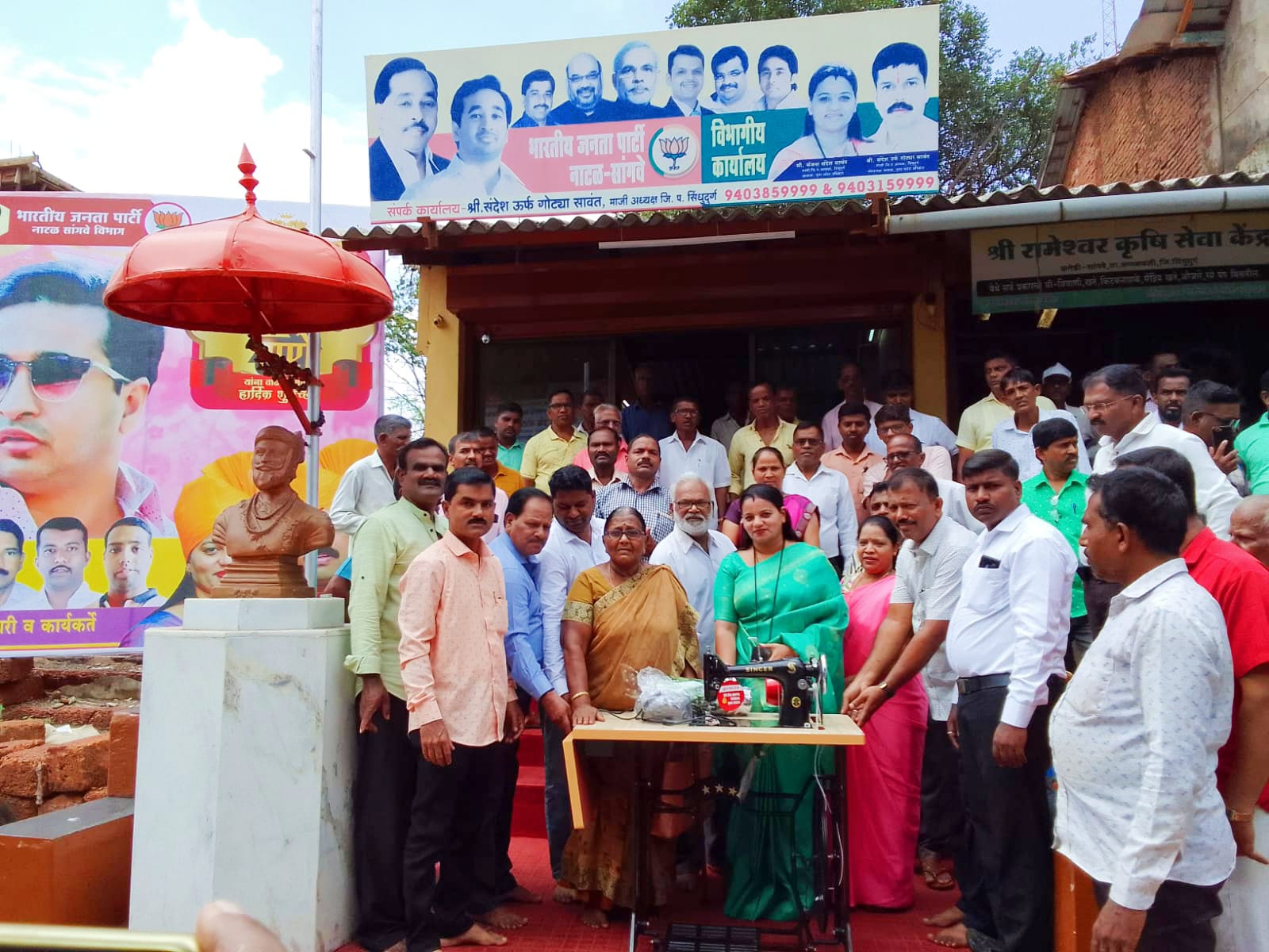 आज कनेडी बाजारपेठ येथील विभागीय कार्यालयात झालेल्या कार्यक्रमात सौ.संजना सावंत,माजी अध्यक्षा, जि.प.सिंधुदुर्ग,यांच्या हस्ते शिलाई मशीन देण्यात आली .यावेळी, विभागीय अध्यक्ष विजय भोगटे, सांगवे सरपंच श्री.संजय सावंत, सुरेश ढवळ, नाटळ सरपंच श्री.सुनिल घाडीगांवकर,गांधीनगर सरपंच श्री.मंगेश बोभाटे, दारिस्ते उपसरपंच श्री.संजय सावंत,माजी सरपंच श्री.महेंद्र सावंत, अशोक कांबळे, नितीन गांवकर, अजित तांबे, सौ.मयुरी मुंज, सौ.राजश्री पवार,श्री.राॅबर्ट डिसोजा, दिपक नांदगांकर, राजेश सापळे, आणि नाटळ आणि हरकुळ मतदार संघातील भाजपचे कार्यकर्ते मोठ्या संख्येने उपस्थित होते.