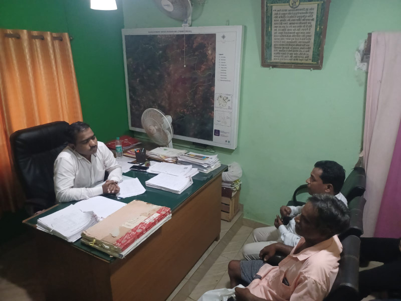 दोडामार्ग : वनविभागाच्या कार्यालयात वनक्षेत्रपाल यांच्याशी चर्चा करताना शेतकरी