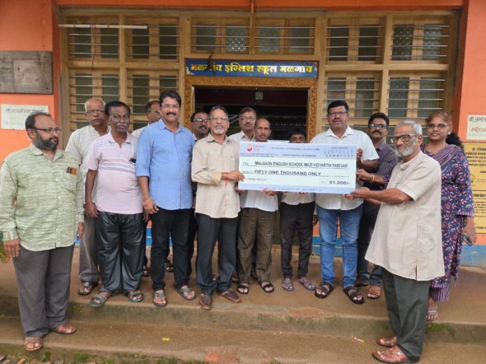 मळगाव हायस्कूलच्या माजी विद्यार्थी परिवार या समितीच्या पदाधिकाऱ्यांकडे ही रक्कम सुपूर्द करण्यात आली.