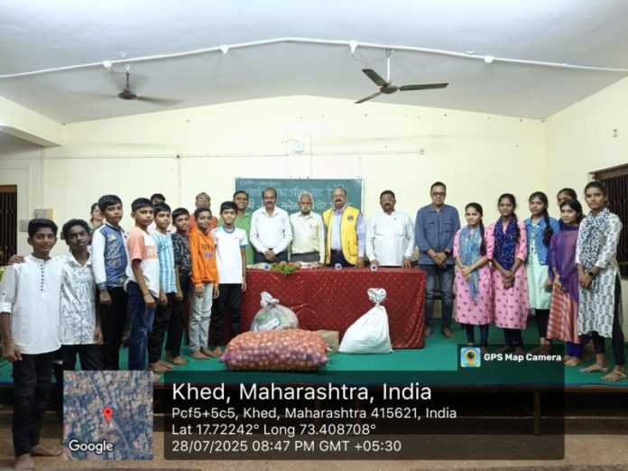 लायन्स क्लब ऑफ खेड सिटीच्या वतीने दरवर्षीप्रमाणे यंदाही समाजोपयोगी उपक्रम राबवण्यात आला. २८ जुलै २०२५ रोजी, ला. रोहन विचारे यांचे बंधू श्री. जीवन विचारे यांच्या वाढदिवसानिमित्त नवभारत हायस्कूल, भरणे येथील मुला-मुलींच्या वसतिगृहासाठी जिन्नाचे (अन्नधान्य) वाटप करण्यात आले.