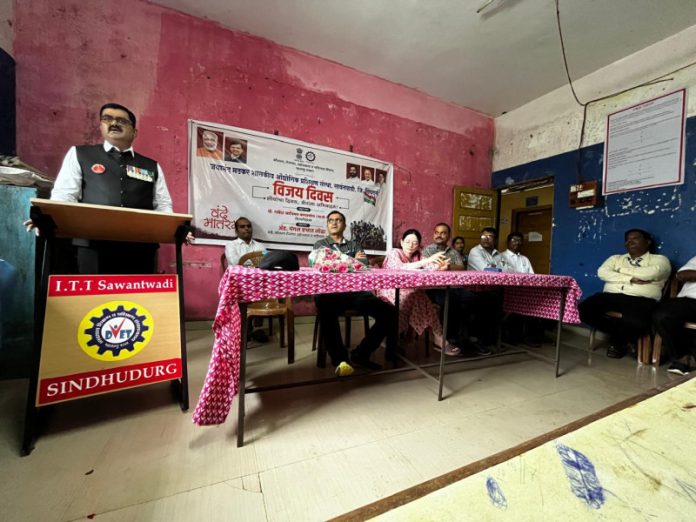 सावंतवाडी : 26 जुलै 2025 रोजी जयानंद मठकर शाशकीय औद्योगिक प्रशिक्षण संस्था सावंतवाडी या संस्थेत कारगिल विजय दिवस साजरा करण्यात आला. कार्यक्रमाचे अध्यक्ष उपप्राचार्य ठाकुर सर यांनी प्रशिक्षणार्थ्यांना मार्गदर्शन केले.