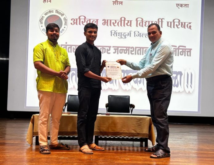 वेंगुर्ले l प्रतिनिधी :अखिल भारतीय विद्यार्थी परिषद (अभाविप) वेंगुर्ला शाखेच्या वतीने येथील मधुसूदन कालेलकर नाट्यगृहात गुणवंत विद्यार्थी सत्कार सोहळा मोठ्या उत्साहात पार पडला. या कार्यक्रमाला विद्यार्थ्यांचा उत्स्फूर्त प्रतिसाद लाभला.