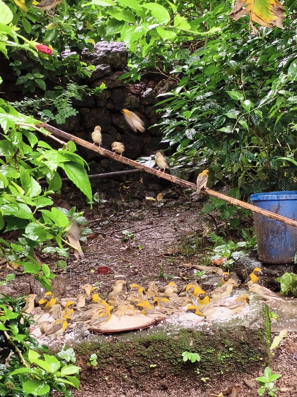 यासंदर्भात बोलताना शुभा कदम यांनी सांगितलं की, गेली ७ वर्षे हे पिवळसर पक्षी आपल्याकडे येत आहेत. त्यांच्यासोबत पूर्ण खरबे आणि छोटे काळे पक्षीही असतात. सकाळी ६ वाजता, त्यानंतर दहाच्या दरम्यान, दुपारी १, सायंकाळी ४ आणि शेवटी स्थानिक मुक्कामी जाण्यापूर्वी सायंकाळी ६ वाजता तांदळाच्या आहारासाठी हे पक्षी येतात. रोज किमान दीड किलो तांदूळ लागत असल्याने सप्टेंबर पर्यंत १३० ते १५० किलो तांदूळ या पक्षाना आहारासाठी लागतात. मात्र विजयदुर्ग मधील नंदू जावकर, युसुफ मुजावर,प्रशांत टुकरूल यासारखे पक्षीप्रेमी काही प्रमाणात तांदूळ देत असल्याने मदत होते. दिवसभर या पक्षांचा किलबिलाट असल्याने वातावरण अतिशय प्रसन्न वाटतं. मात्र जेव्हा सप्टेंबरमध्ये ते पुन्हा निघून जातात तेव्हा काही दिवस पक्षी वावरत असलेला घराबाजूचा परिसर सुनासुना वाटतो अशी प्रतिक्रिया शुभा कदम यांनी दिली.