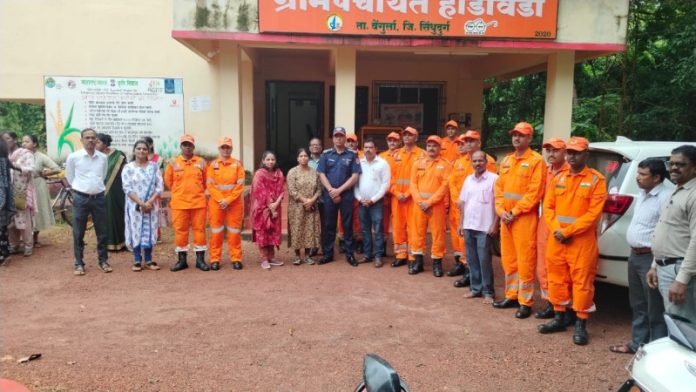 होडावडे येथे आपत्कालीन व्यवस्थापन प्रशिक्षणात सहभागी झालेली एनडीआरएफची टीम.