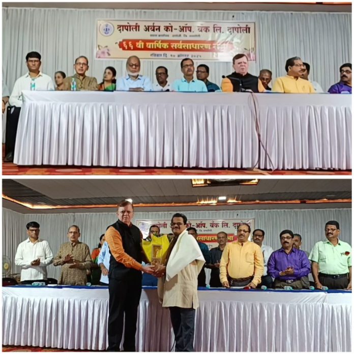 दापोली :– दापोली अर्बन बँक दापोली या देदीप्यमान वाटचाल असलेल्या बँकेची ६६ वी सर्वसाधारण सभा दिनांक १० ऑगस्ट रोजी सर्वसाधारण सभा नवभारत छात्रालय सेवाव्रती शिंदे गुरुजी सभागृह येथे अतिशय खेळीमेळीच्या वातावरणात संपन्न झाली. या सभे करता एक हजार पेक्षा अधिक अधिक सदस्य आवर्जून उपस्थित होते.