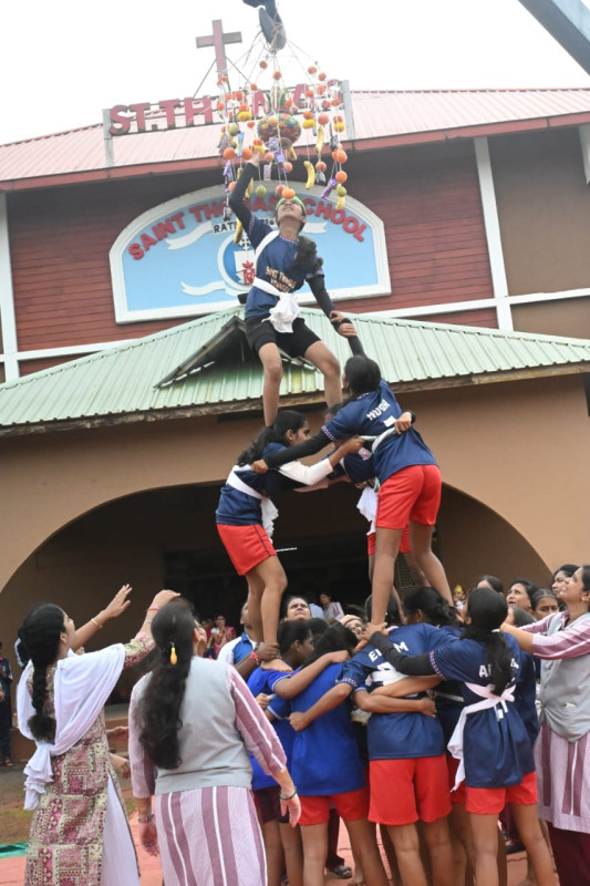 रत्नागिरी: कारवांचीवाडी येथील सेंट थॉमस स्कूलमध्ये शनिवारी दहीहंडीचा उत्सव साजरा करण्यात आला. दहीहंडी साठी विद्यार्थीनी व विद्यार्थी असे दोन संघ तयार करण्यात आले होते. या दोन्हीही संघांनी दहीहंडीला दमदार अशी सलामी दिली व दहीहंडी फोडली. दहीहंडी निमित्त नृत्य सादरीकरण करण्यात आले. सर्व विद्यार्थ्यांनी दहीहंडीच्या उत्सवामध्ये उत्स्फूर्तपणे सहभाग घेतला.