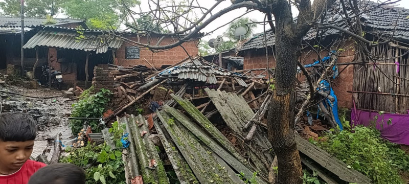 तालुक्यातील कादवण येथे घर कोसळून नुकसान, तर गोठे व नारायणनगर येथे अंशतः घरांचे नुकसान