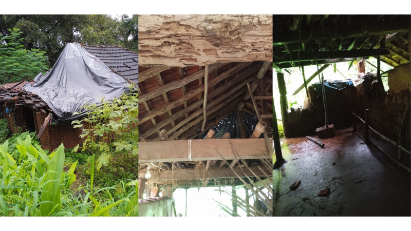 ३) हिंदळे येथील कमलाकर महादेव मयेकर यांच्या घराच्या पडवीवर कोसळलेला माड