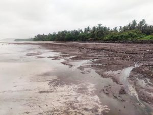 दापोली :- रत्नागिरी जिल्ह्यातील दापोली तालुक्यातील आंजर्ले किनारपट्टीचा प्रदेश प्लास्टिक कचऱ्याने आणि दोनशे मीटर परिसरामध्ये ऑइल मिश्रित चिकट द्राव आल्यामुळे संपूर्णतः वाळू आणि किनारा हा प्रदूषित झाला आहे .
