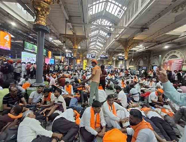 सीएसएमटी स्थानकाबाहेर आंदोलकांनी हलगीच्या तालावर जल्लोष केला. ‘एक मराठा लाख मराठा’ अशा घोषणाबाजीत परिसर दुमदुमला. आंदोलकांनी सेल्फी आणि व्हिडिओ काढत एकजुटीचा संदेश दिले.