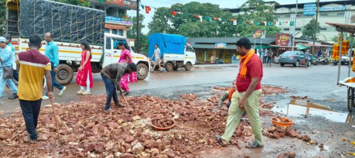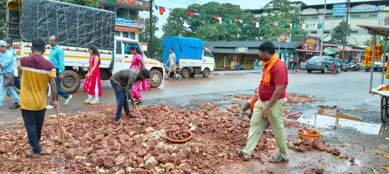 या ठिकाणाहून प्रवास करताना वाहन चालकांसह प्रवासी व नागरिक यांना नाहक त्रास सहन करावा लागत होता. गणेशोत्सव दरम्यान शृंगारतळी बाजारपेठ मध्ये हजारो ग्राहक येत असतात परंतु पूल मार्केट येथील रस्त्यावर पडलेले खड्डे सर्वांनाच मनस्ताप सहन करणारे ठरत होते. अखेर शेवटी मनसेचे गुहागर तालुका संपर्क अध्यक्ष प्रमोद गांधी, उपजिल्हाध्यक्ष विनोद जानवरकर , तालुकाध्यक्ष सुनील हळदणकर व अन्य पदाधिकारी यांनी दोन दिवसात खड्डे न भरल्यास वृक्षारोपण करू असा इशारा अधिकाऱ्यांना दिला होता, मनसे उपजिल्हाध्यक्ष विनोद जानवळकर यांच्या “मनसे” दणक्याने राष्ट्रीय महामार्गाच्या अधिकाऱ्यांनी तात्काळ रस्त्यावरील खड्डे बुजवले. यावेळी राष्ट्रीय महामार्गाचे अधिकारी श्री खुणेकर यांनी सदरचे खड्डे तात्काळ भरल्याने मनसेच्या वतीने त्यांचे आभार मानण्यात आले.