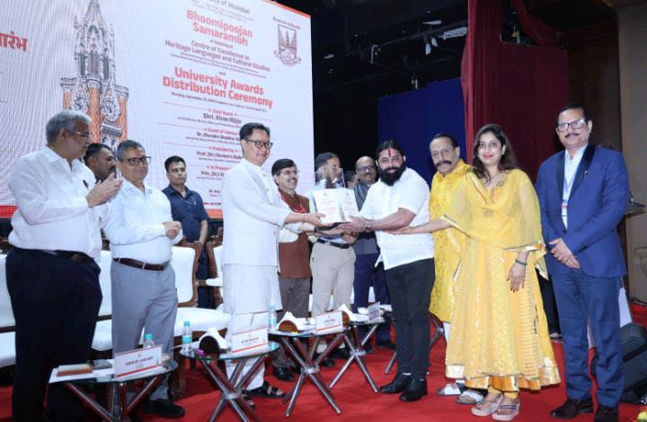 वेंगुर्ले l दाजी नाईक :मुंबई विद्यापीठाचा ग्रामीण भागातील सर्वोत्कृष्ट महाविद्यालय हा प्रतिष्ठेचा पुरस्कार यावर्षी बॅ. बाळासाहेब खर्डेकर महाविद्यालय, वेंगुर्ला यांना प्राप्त झाला. संसदीय कार्य व अल्पसंख्याक मंत्री किरण रिजीजू यांच्या हस्ते पुरस्कार स्वीकारताना शिक्षण प्रसारक मंडळ कोल्हापूर च्या संचालक मंडळाचा आनंद ओसंडून वाहत होता. या पुरस्काराने सामान्य मच्छीमार, शेतकरी, कामगार यांच्या मुलांना शिक्षणाचे दरवाजे खुले करून त्यांच्यात आत्मविश्वास निर्माण करणाऱ्या शिक्षण प्रसारक मंडळाच्या प्रयत्नांचा समाजमान्य हा सन्मान झाला.