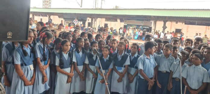 रत्नागिरीकरांकडून स्वागत करण्यात आले. वंदे भारत एक्स्प्रेसच्या स्वागतवेळी आयोजित समारंभात कुवारबाव येथील श्रीमती राधाबाई गोपाळ जागुष्टे हायस्कूल इयत्ता आठवी आणि नववीच्या वर्गातील 65 विद्यार्थ्यांनी देशभक्तीपर समूहगीत सादर केले.