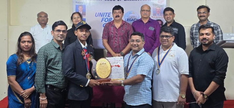 राष्ट्रीय स्तरावरील रायफल शूटिंग स्पर्धेत सुवर्णपदक पटकावून सावंतवाडीचे नाव उज्वल करणाऱ्या सार्जंट अनंत अनन्या अभिजीत चिंचकर याचा रोटरी क्लब सावंतवाडी तर्फे भव्य सत्कार करण्यात आला.