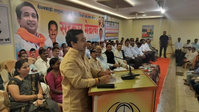वैभववाडी l प्रतिनिधी : तळकोकणात आर्थिक समृद्धीचा एकमेव मार्ग सहकार आहे. जिल्ह्याचे दरडोई उत्पन्न वाढविण्यासाठी सहकार हा सर्वात गतिमान मार्ग आहे. सहकार क्षेत्रात देखील आपण आता मागे राहायचं नाही. सहकारातून समृद्धीकडे वाटचाल करणाऱ्या युवकांच्या पाठीशी आम्ही खंबीरपणे उभे आहोत. त्यांच्या पाठीशी संपूर्ण ताकद उभी करणार असे प्रतिपादन मत्स्यव्यवसाय व बंदरे विकास मंत्री तथा पालकमंत्री नितेश राणे यांनी व्यक्त केले. वैभववाडी तालुक्यात सहकार भवन इमारत तसेच खरेदी विक्री संघाची भव्य इमारत लवकरच उभारणार असे आश्वासनही नितेश राणे यांनी दिले.