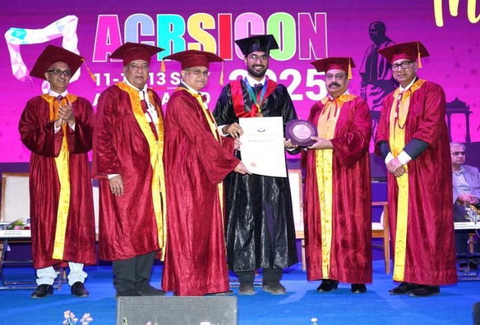 रत्नागिरी : असोसिएशन ऑफ कोलन अँड रेक्टल सर्जन ऑफ इंडिया (ACRSI) या संस्थेकडून अत्यंत मानाची अशी एफएसीआरएसआय (FACRSI) ही फेलोशिप डॉ. सुश्रुत प्रमोद तेंडुलकर यांनी भारतात प्रथम क्रमांक आणि सुवर्णपदकासह पटकावली.