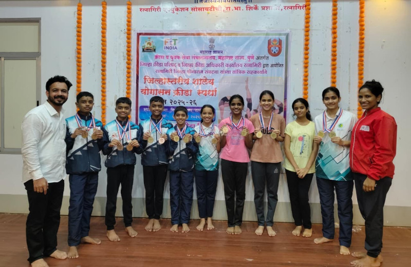 या जिल्हास्तरीय योगासन स्पर्धेमध्येे *14 वर्षे मुले या वयोगटात ट्रॅडिशनल वैयक्तिक* या प्रकारामध्ये शाश्वत धुमाळ – सुवर्ण पदक, श्री दळवी – रौप्य पदक, श्लोक दळवी – कांस्य पदक, *आर्टिस्टिक वैयक्तिक* या प्रकारामध्ये स्पंदन धामणे – सुवर्ण पदक, *आर्टिस्टिक सांघिक* या प्रकारामध्ये स्पंदन धामणे – सुवर्ण पदक, शाश्वत धुमाळ – सुवर्ण पदक, *कलात्मक सांघिक* या प्रकारामध्ये श्री दळवी – सुवर्ण पदक, श्लोक दळवी – सुवर्ण पदक, 14 वर्ष मुली या वयोगटात *आर्टिस्टिक सांघिक* या प्रकारामध्ये श्रावणी दिवेकर – सुवर्ण पदक, इशदा भोसले – सुवर्ण पदक, *कलात्मक सांघिक* या प्रकारामध्ये श्रावणी दिवेकर – सुवर्ण पदक, इशदा भोसले – सुवर्ण पदक, 19 वर्षे मुली या वयोगटात *आर्टिस्टिक सांघिक* या प्रकारामध्ये अनुष्का म्हातले – सुवर्ण पदक, प्रांजल आंबेडे – सुवर्ण पदक, *कलात्मक सांघिक* या प्रकारामध्ये अनुष्का म्हातले – सुवर्ण पदक, प्रांजल अंबाडे – सुवर्ण पदक पटकावून यश संपादित केले. वरील सर्व यशस्वी विद्यार्थ्यांवर सर्वच स्तरांतून कौतुकाचा वर्षाव होत आहे. सर्व सुवर्णपदक विजेत्यांची दि. 7 ऑक्टोबर 2025 रोजी इचलकरंजी येथे होणार्या विभागीय योगासना स्पर्धेसाठी निवड झाली आहे. वरील सर्व योगापटूंना योगा प्रशिक्षक डॉ. गौरव आंब्रे व सौ. शीतल घाणेकर यांचे मोलाचे मार्गदर्शन लाभले.