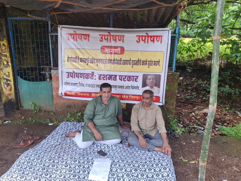 खेड तालुक्यातील खडीपट्टा विभागातील ग्रामस्थांच्या दीर्घकालीन मागणीसाठी सामाजिक कार्यकर्ते मा. श्री. हसमत भाई परकार यांनी आज दिनांक ७ ऑक्टोबर पासून आमरण उपोषण सुरू केले आहे. खाडीपट्टा विभागातील सवणस रांगलेवाडी ते सवणस सडे, अणसपुरे, सवणस घोणसवणे, तळघर, मुलगाव, तुंबाड, बहिरवली, होडखाड आणि पन्हाळजे या गावांना जोडणाऱ्या रस्त्यांची दुरावस्था झाली आहे. या भागातील ग्रामस्थांना रस्त्याच्या दुरावस्थेमुळे रोजच्या जीवनात मोठ्या अडचणींना सामोरे जावे लागत आहे. यासाठी खडीपट्टा विभागातील सामाजिक कार्यकर्ते हशमत परकार यांनी अखेर आज आपले उपोषण सुरू केले.