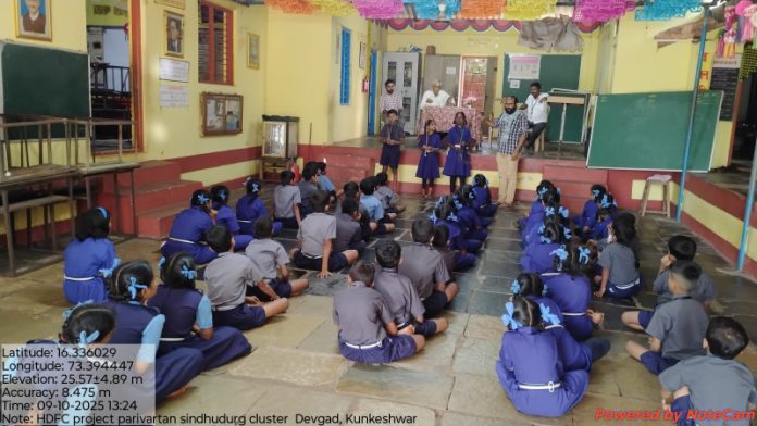 डॉ. वर्तक यांनी विद्यार्थ्यांना खडकांचे प्रकार, निर्मिती प्रक्रिया, खनिजे, जीवाश्म, तसेच समुद्रकिनाऱ्यावरील शंख-शिंपले, सागराचे आपल्या जीवनातील महत्त्व, आणि सागरी वनस्पती व जीवसृष्टी याबाबत रोचक उदाहरणांसह मार्गदर्शन केले. त्यांनी विद्यार्थ्यांना खडक व वाळूचे नमुने दाखवत पृथ्वीच्या उत्क्रांतीची कथा जिवंत केली. विद्यार्थ्यांच्या प्रश्नांना उत्तरे देत त्यांनी त्यांच्या जिज्ञासेला आणि वैज्ञानिक दृष्टिकोनाला चालना दिली. विद्यार्थ्यांशी संवाद साधत त्यांनी विज्ञान क्षेत्रात आत्मविश्वासाने पुढे यावे, असे प्रेरणादायी संदेश दिले.बसवंत विठाबाई बाबाराव यांनी विद्यार्थ्यांशी पर्यावरणातील बदल, स्थानिक जैवविविधता आणि शाश्वत जीवनशैली यांबाबत संवाद साधला. त्यांनी विद्यार्थ्यांना परिसरातील गवतांच्या विविध प्रजातींचे महत्त्व, तसेच आपल्या गावातील नैसर्गिक संपत्ती जपण्यासाठी ‘गवताचे हरवेरियम (Herbarium)’ तयार करण्याचा प्रकल्प सुचवला. या उपक्रमातून मुलांमध्ये निरीक्षण, नोंदवही ठेवणे, आणि स्थानिक पर्यावरणाचे दस्तऐवजीकरण या गुणांचा विकास होईल, असे त्यांनी सांगितले. नाविन्यपूर्ण प्रयत्नांचे कौतुक: मिठबाव येथील श्री रामेश्वर हायस्कूलमधील शिक्षकांनी राबविलेल्या स्थानिक पर्यावरणाशी निगडित प्रकल्पांचा आढावा घेत दोन्ही मान्यवरांनी त्यांचे कौतुक केले. विद्यार्थ्यांच्या सर्जनशील कल्पनांना चालना देण्यासाठी आणि समुद्र–पर्यावरणाविषयी जागरूकता निर्माण करण्यासाठी निबंध आणि चित्रकला स्पर्धांची घोषणा करण्यात आली.