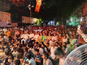 मुंबई / प्रतिनिधी :मुंबई येथे सुरु असलेल्या मालवणी जत्रोत्सवात वेंगुर्ला तालुक्यातील आरवली येथील आरोलकर पारंपरिक दशावतार नाट्य मंडळाने चंड भैरवी माता हे पौराणिक नाटक सादर करीत मायबाप रसिक प्रेक्षकांची वाहवा मिळवली. सुमारे 32 वर्षानंतर आरोलकर नाट्य मंडळाने मुंबईत यशस्वी पुनरागमन करत आपली नाट्यकला रसिकांसमोर सादर केली.