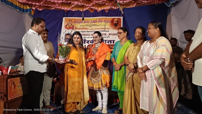 0 यंदा मुंबईच्या मालवणी जत्रोत्सव 2025 मध्ये काल वाघदेवी नगर दहिसरच्या रंगमंचावर आरोलकर मंडळाने आपल्या बहारदार सादरीकरणाने रसिकांना खिळवून ठेवले. दशावतार कलाक्षेत्रात आपल्या बावन्नकशी बहारदार अभिनयातून राजपात्र साकारणारे पप्पू चव्हाण यांनी आपली देहबोली, उत्कृष्ट भाषशैलीच्या जोरावर राजपात्राला उत्तम न्याय दिला. प्रताप गावडे यांनी वल्लभ नगरीचा राजा उत्तम सादर केला. पार्वतीची भूमिका साकारणारे संतोष सामंत यांनी भावपूर्ण अभिनय सादर करत भक्तांच्या रक्षणासाठी माता सदैव तत्पर असते हे दाखवून दिले. बाळा हळदणकर यांनी आपल्या उत्कृष्ट वेशभूषेतून क्रूर भैरव साकारत आपल्या खणखणीत आवाजात रंगमंच दणाणून सोडला. आनंद गावकर यांनी आपल्या गोड आवाजात नारद सादर करून नाटकाची शोभा वाढवली. पप्पू मेस्त्री याने आपल्या सौंदर्याच्या जोरावर डोंबरी कन्या साकारून रसिकांची मने जिंकली. जेष्ठ कलाकार बाबू राणेनी उत्तम असुर साकारला तर नारायण कुंभार यांनी आपल्या कॉमेडी अभिनयाने डोंबारी सादर करत प्रेक्षकांनी हसवत ठेवले. सर्व कलाकारांनी आपापल्या भूमिका प्राण ओतून सादर केल्यानेच उत्तम दर्जेदार नाटक रसिकांना पाहता आले.