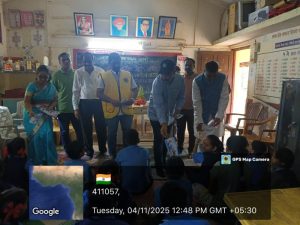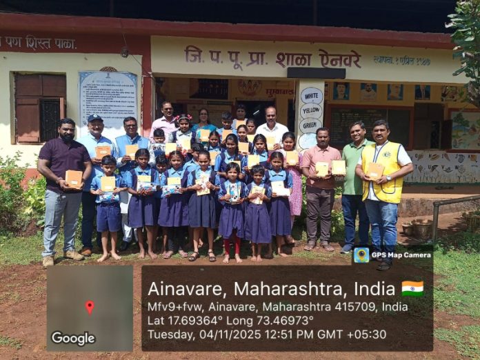 खेड (प्रतिनिधी) :– लायन्स क्लब ऑफ खेड सिटीच्या वतीने आज दिनांक ४ नोव्हेंबर २०२५ रोजी ऐनवरे गावात सामाजिक उपक्रमातून एक प्रशंसनीय उपक्रम राबवण्यात आला. ऐनवरे गावचे माजी सरपंच तसेच खेड तालुका राष्ट्रवादी काँग्रेस पार्टीचे तालुका अध्यक्ष आणि सामाजिक कार्यात नेहमीच अग्रेसर राहिलेले श्री. संजय जाधव यांच्या वाढदिवसानिमित्त शैक्षणिक साहित्य वाटप कार्यक्रमाचे आयोजन करण्यात आले.या उपक्रमांतर्गत ऐनवरे येथील जिल्हा परिषद शाळेतील विद्यार्थ्यांना वह्या, पेन, पेन्सिल, दप्तर आदी आवश्यक शैक्षणिक साहित्य वाटप करण्यात आले. विद्यार्थ्यांच्या चेहऱ्यावर आनंद झळकला आणि शाळेचे वातावरण उत्साहपूर्ण झाले.