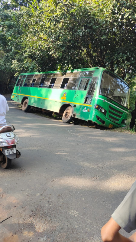 मिळालेल्या माहितीनुसार, दुपारी ३ वाजता ही घटना घडली. बस नेमकी कोणत्या कारणास्तव चरात उतरली, याची अधिकृत माहिती अद्याप समोर आलेली नाही. मात्र, बस चालकाच्या प्रसंगावधानामुळे किंवा अपघाताची तीव्रता कमी असल्यामुळे, या घटनेत बसमध्ये असलेल्या एकाही प्रवाशाला कोणतीही दुखापत झाली नाही. ‘कुणालाही दुःखपत झाली नाही’, अशी माहिती स्थानिक सूत्रांकडून मिळाली आहे.