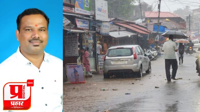 दरम्यान, शासनातर्फे जिल्ह्यात अतिवृष्टीचा इशारा दिला असताना देखील नगरपालिका प्रशासन मात्र सुशेगात असून कोणतीही उपायोजना करत नाही. त्यामुळे बाजारपेठेत ही परिस्थिती उद्भवली आहे, असेही त्यांनी म्हटले आहे.विठ्ठल मंदिर येथील गटारासमोर मोठ भगदाड पडल असून पावसाचे पाणी त्या खड्ड्यात जात असल्याने तो खड्डा दिसत नाही. त्यामुळे शाळेतील विद्यार्थी किंवा नागरीक त्यात पडून अपघात होण्याची शक्यता नाकारता येत नाही. त्यामुळे तो देखील तात्काळ बुजवण्यात यावा अशी मागणी त्यांनी यावेळी केली आहे.