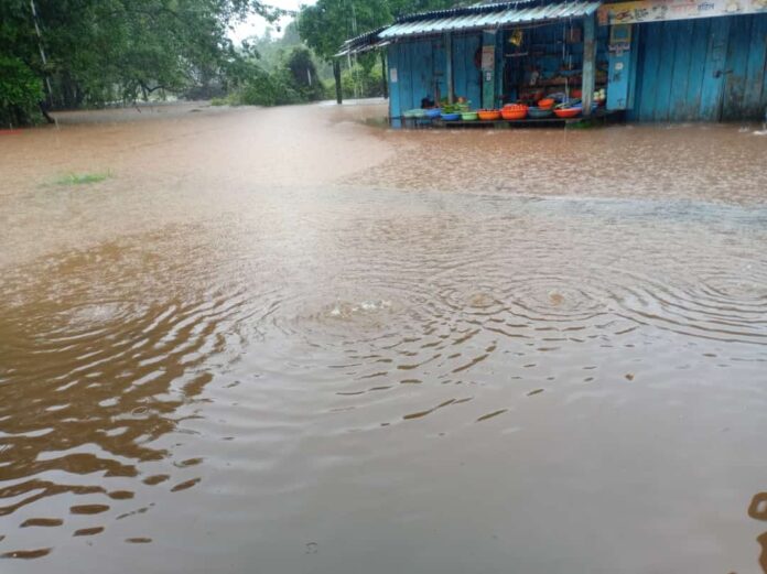 माखजन |वार्ताहर : संगमेश्वर तालुक्यातील माखजन बाजारपेठेत गडनदी च्या पुराचे पाणी घुसल्याने जन जीवन विस्कळीत झाले आहे.दुकानांमध्ये पाणी घुसल्याने व्यापारी चिंतेत आहेत.वाढत्या पावसामुळे अनेक शेजारच्या गावांमधील ओढ्यांना पूर आला आहे त्यामुळे गावागावातील रहिवाश्याना अडचणीं चा सामना करावा लागत आहे.
