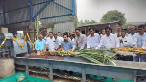 नाधवडे येथील अष्टकृपा प्रायव्हेट लिमिटेड च्या वतीने सिंधुदुर्ग जिल्ह्यातील पहिला स्वयंचलित गुळ निर्मिती उद्योग उभारण्यात आला आहे. या उद्योगाचे मोळी पूजन आणि लोगोचे अनावरण पालकमंत्री नितेश राणे यांच्या शुभहस्ते पार पडले. यावेळी जिल्हा बँक संचालक दिलीप रावराणे, पणन महासंघाचे संचालक प्रमोद रावराणे, वैभववाडी भाजपा अध्यक्ष सुधीर नकाशे, भालचंद्र साठे, दिगंबर पाटील, बाप्पी मांजरेकर, राजेंद्र राणे, महेश संसारे, नगराध्यक्ष श्रद्धा रावराणे, सरपंच लीना पांचाळ, गुलाबराव चव्हाण, प्राची तावडे, स्नेहलता चोरगे, बंड्या मांजरेकर, महेश गोखले, उद्योजक हनुमंत नारकर, उद्योजक दिगंबर इस्वलकर, माफी मांजरेकर आदी उपस्थित होते.