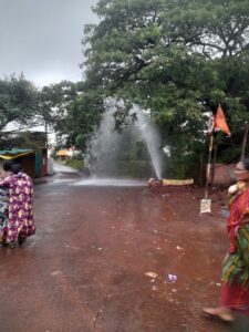 आता भर पावसात सुद्धा पाईप लाइन मधून कारंजे उडत असून हे डोळ्याचे पारणें फिटवाणारे दृश्य रत्नागिरी शहरातील साळवी स्टॉप येथील आहे.
