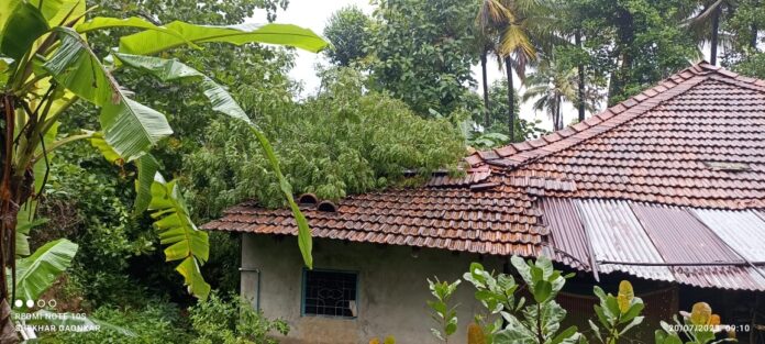 ओटवणे(प्रतिनीधी) ओटवणे देवुळवाडी येथिल ज्ञानेश्वर गुणाजी गावकर यांच्या राहत्या घरावर काजीचे भले मोठे झाड कोसळून मोठें अर्थिक नुकसान झाले आहे. सर्वत्र कोसळत असणाऱ्या वादळी वाऱ्यासह पावसामुळे अनेक ठिकाणी पडझडीच्या घटना घडल्या असून ओटवणे दशक्रोशित ही अनेक लहान मोठ्या घटना घडल्या आहेत. या घटनेमुळे गावकर कुटुंबीयाचे यात मोठे अर्थिक नुकसान झाले आहे.