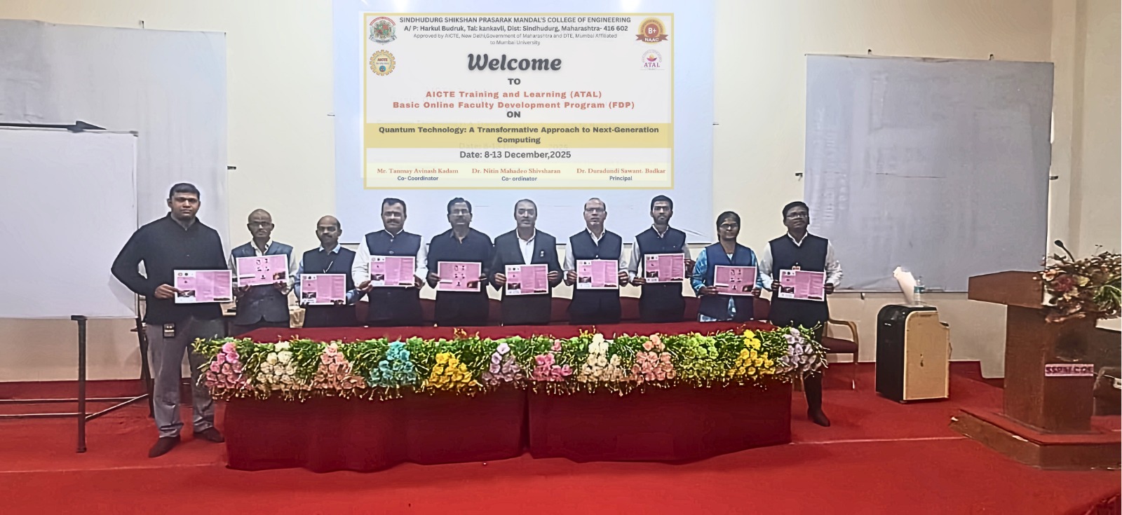 कणकवली, एसएसपीएम अभियांत्रिकी महाविद्यालय, कणकवली येथे “क्वांटम टेक्नॉलॉजी : ट्रान्सफॉर्मटिव्ह अॅप्रोच फॉर नेक्स्ट जनरेशन कम्प्युटिंग” या विषयावर एआयसीटीई प्रायोजित अटल फॅकल्टी डेव्हलपमेंट प्रोग्राम (एफडीपी) ऑनलाइन पद्धतीने ८ डिसेंबर ते १३ डिसेंबर २०२५ या कालावधीत आयोजित करण्यात आला होता.