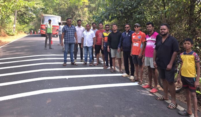 न्हावेली l प्रतिनिधी : सावंतवाडी–शिरोडा मार्गावरील न्हावेली गावात मुख्य रस्त्यावर शाळेसमोर तसेच अन्य दोन धोकादायक ठिकाणी सार्वजनिक बांधकाम विभागाकडून वेगरोधक (रम्बलिंग) पट्टे घालण्यात आल्याने ग्रामस्थांनी समाधान व्यक्त केले आहे. गेल्या एक वर्षापासून सुरू असलेल्या पाठपुराव्याला अखेर यश मिळाले आहे.