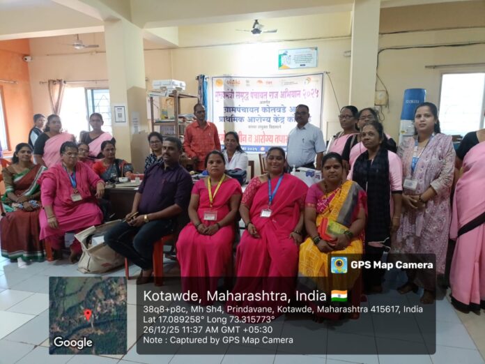 मुख्यमंत्रीसमृद्ध पंचायतराज अभियान अंतर्गत ग्रामपंचायत कोतवडे व प्राथमिक आरोग्य केंद्र कोतवडे यांच्या संयुक्त विद्यमाने मोफत हिमोग्लोबीन तपासणी शिबिर,रक्तदाब तपासणी ,मधुमेह तपासणी ,HBA१C तपासणी ,नेत्र तपासणी या आरोग्य तपासणी शिबिर संपन्न झाले .सदर शिबिराचा मोठ्या संख्येने ग्रामस्थानी लाभ घेतला ग्रामीण भागातील महिला, ज्येष्ठ नागरिक तालुक्याच्या ठिकाणी जाऊन आवश्यक तपासण्या करू शकत नाहीत .तसेच तपासण्या खर्चिक असल्याने गोरगरीब जनता ह्या तपासण्या करू शकत नाहीत. म्हणून सदर शिबिर स्थानिक पातळीवर ग्रामपंचायत मार्फत आयोजित केले असल्याची माहिती सरपंच श्री संतोष बारगोडे यांनी दिली. या प्रसंगी सरपंच श्री संतोष बारगोडे,उपसरपंच श्री.स्वप्नील पड्याळ ,ग्रामपंचात अधिकारी श्री देविदास इंगळे ,संजय गांधी निराधार समिती अध्यक्ष श्री स्वप्नील मयेकर,ग्रामपंचायत सदस्य सौ.दिया कांबळे,विस्तार अधिकारी श्री पी.एन.सुर्वे.समुदाय आरोग्य अधिकारी डॉ.गौरी कांबळे,आरोग्य सेवक श्री.संकेत पंडिये लॅब टेक्निशियन सौ नेहा जाधव,नेत्र तपासनीस श्री.विजय मारे आशा सेविका सौ.वर्षा जोगळेकर, स्नेहल माने,सुनीता शितप,वैष्णवी लांजेकर, दीक्षा सकपाळ ,अंगणवाडी सेविका सौ.प्रीती बारगोडे , श्रीम. रेश्मा जोशी,वारणा ठोंबरे ग्रामपंचायत कर्मचारी श्री भालचंद्र लिंगायत,सौ. प्राप्ती बारगोडे, मयुरी भोसले,भक्ती नाचणकर,सूरज इमल,अशोक कुरटे,मयूर कांबळे,यश लिंगायत आणि कोतवडे परिसरातील ग्रामस्थ लाभार्थी मोठ्या संख्येने उपस्थित होते.