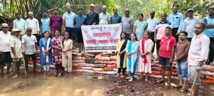 मसुरे | झुंजार पेडणेकर : कोकणात पाऊस भरपूर पडत असून रबी व उन्हाळी हंगामासाठी शेतीकरिता पाणी नियोजनाकरिता वनराई बंधाऱ्याचे महत्व अनन्य साधारण आहे. वनराई बधाऱ्यामुळे जास्तीत जास्त क्षेत्र रबी हंगामामध्ये लागवडीखाली येऊ शकते असे मनोगत मा तालुका कृषी अधिकारी श्री अमोल करंदीकर यांनी व्यक्त केले. तालुका कृषी अधिकारी कार्यालय मालवणद्वारा व ग्रामपंचायत, वायंगवडे यांच्या सहकार्याने वायंगवडे येथे कृषि अधिकारी व ग्रामस्थ यांच्यामार्फत श्रमदानातून वनराई बंधारा घालण्यात आला. सदर कार्यक्रमास तालुका कृषी अधिकारी श्री अमोल करंदीकर, सरपंच श्रीम विशाखा सकपाळ, उपसरपंच श्री विनायक परब, मंडळ कृषी अधिकारी पोईप श्री दशरथ सावंत, मंडळ कृषी अधिकारी आचरा श्री हुसेन अंबार्डेकर, उपकृषि अधिकारी श्री श्रीपाद चव्हाण, सिताराम परब, संचिता फाळके, ग्रा प सदस्य श्रीम सानिका राणे, मयुरी परब, तंटामुक्ती समिती अध्यक्ष श्री जयवंत परब, ग्रामस्थ गणेश घोगळे ‘ लक्ष्मण शिंदे , शिवाजी सावंत ‘ गोपाळ राणे, दादू राणे, संदिप राणे, संतोष शेटये, संजय परब, बाळा घाडी , सिद्धी परब वर्षा राणे, विजय परब, मनोरंजन परब, गणपत कदम, राजेंद्र राणे, तालुका कृषि अधिकारी, मालवण कार्यालय अधीनस्थ सर्व सहाय्यक कृषि अधिकारी, ग्रामपंचायत कर्मचारी उपस्थित होते. ग्रामपंचायत अधिकारी श्री कृष्णा दळवी यांनी तालुका कृषि अधिकारी कार्यालय, मालवण यांनी वनराई बंधारा सारखा स्तुत्य उपक्रम गावात राबविल्याबद्दल ग्रामपंचायतच्या वतीने आभार व्यक्त केले.