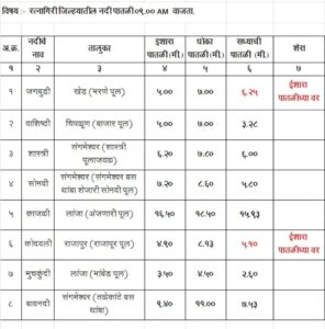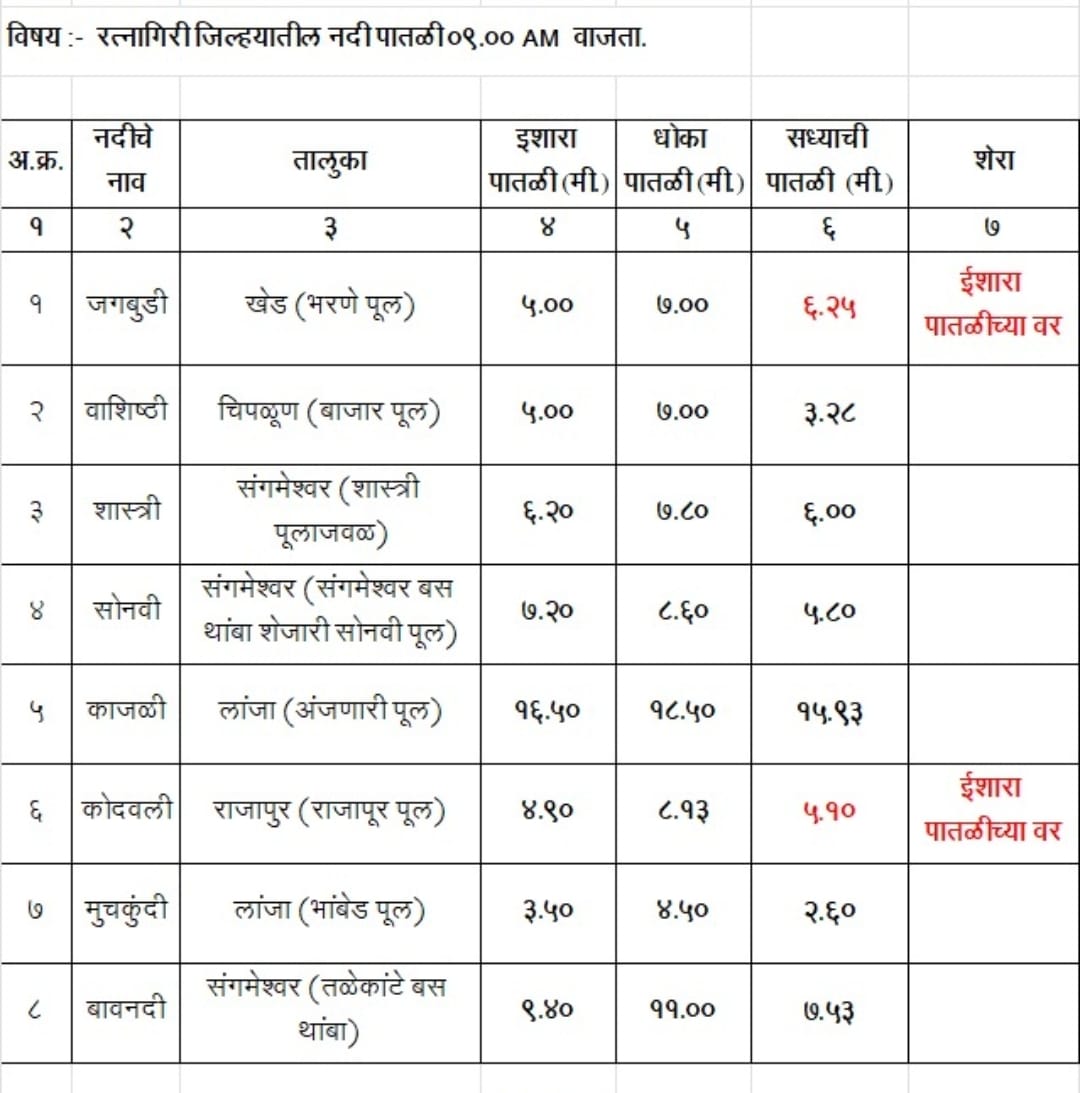 ताज्या घडामोडीरत्नागिरी रत्नागिरी : जिल्ह्यात पुन्हा पावसाचा जोर; जगबुडी, कोदवली इशारा पातळीच्यावर July 22, 2023 Share WhatsAppFacebookTwitterTelegram सकाळी 9 वाजता प्राप्त झालेली रत्नागिरी जिल्ह्यातील नदीतील पाणी पातळी