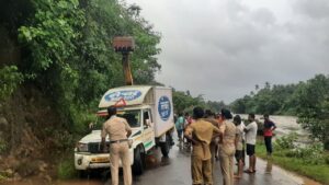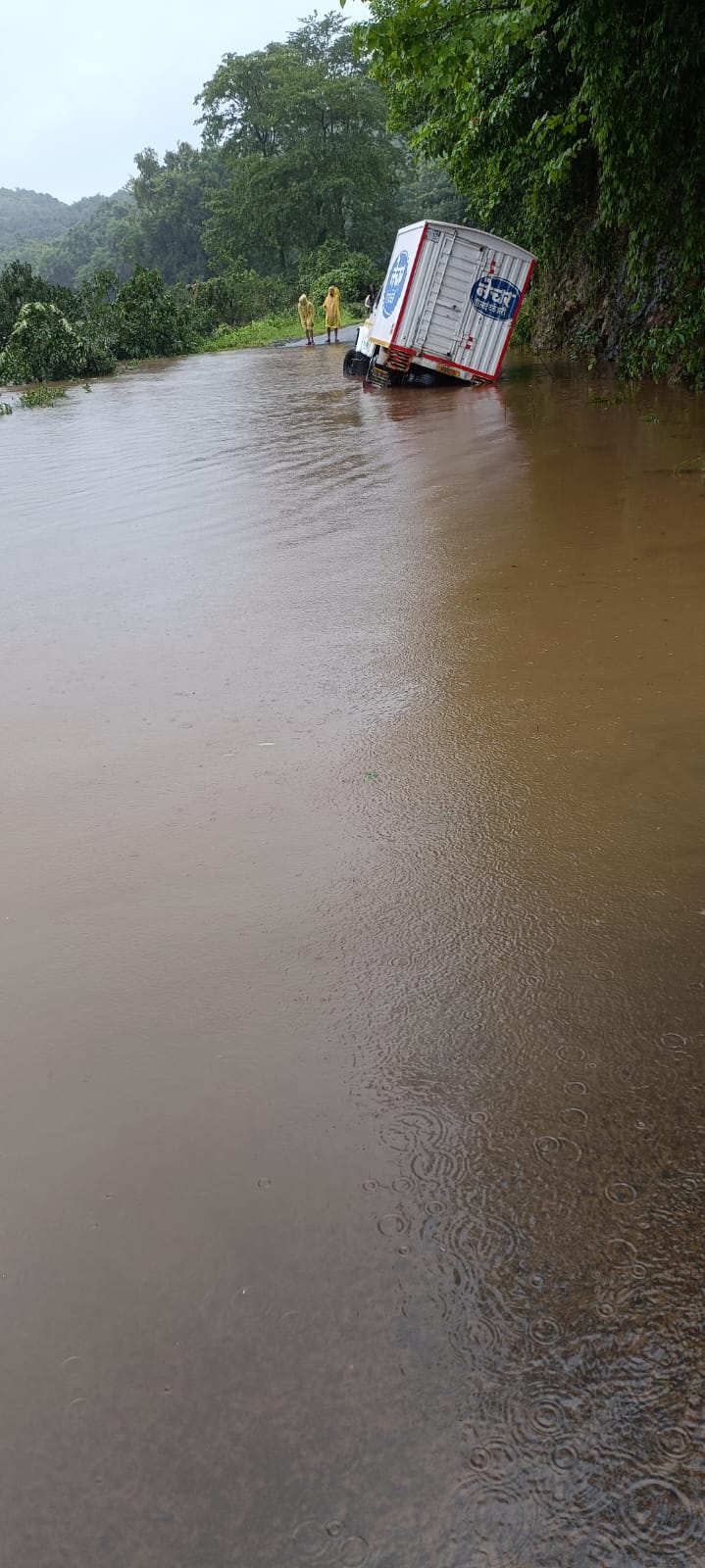 ओटवणे(प्रतीनीधी) दोन दिवसापासून जोरदार पावसामुळे सर्वत्र पूरजन्य परिस्थिति निर्माण झाली असून आज सकाळी बांदा दानोली मार्गावर सपतनाथ देवस्थान नजिक मार्गावर बारामती वरून गोव्याला गेलेला नेचर डेरी चा बोलेरो टेम्पो गोव्यातून परतत असताना पाण्यात अडकला व एका बाजूला कलंडला. येथिल स्थानिकांनी धाव घेत तो टेम्पो दोन तासाच्या अथक परिश्रमाने जे सी बी च्या सहाय्याने बाहेर काढला. कालपासून पावसाचे प्रमाण कमी असले तरी ओटवणे नदीच पाणी आज सकाळ पर्यंत सपथनाथ देवस्थान जवळ रस्त्यावर ३फूट होते दोन दिवसापूर्वीच याच ठिकाणी अशी घटना घडली होती सुदैवाने या दोन्ही घटनेत जिवीत हानी झाली नसली तरी अशा घटनांमधून वाहन चालक कोणताही बोध घेत नसून वाहन चालकांचा आताताहि पणा वारंवार दिसत आहे.यावेळी सुद्धा सरमळे विलवडे येथिल युवकांनी धाव घेत मदत कार्यास सहकार्य केले त्यांचेही कौतुक होत आहे.