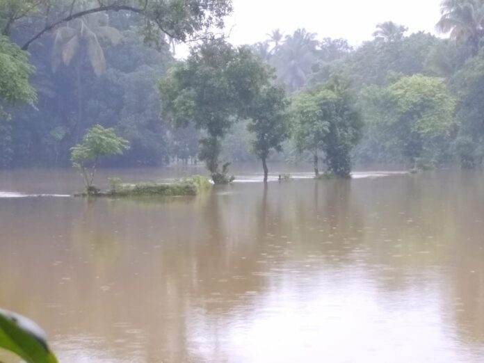 मुसळधार कोसळणाऱ्या पावसामुळे बांदा शेर्ले यासारख्या तेरेखोल नदी लागत असलेल्या सखल भागातील गावांमध्ये नदीचे पाणी शिरून पूरसदृश्य स्थिती निर्माण झाली आहे. अरुण दा लगत असलेल्या गुरुद्वारे गावात देखील केले चार दिवस शेती व बागायती पूर्णपणे पाण्याखाली आली असल्याचे दिसून आले आहे.