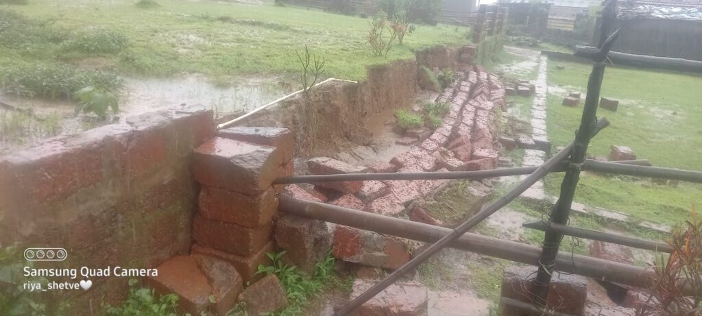 मुसळधार पावसामुळे गोणसाठवाडी शाळेची संरक्षक भिंत कोसळून नुकसान झाले. तर सातार्डा जाधववाडी येथे भले मोठे चिंचेचे झाड उन्हाळून पडल्यामुळे विजेचे खांब तुटून पडले. त्यामुळे या भागातील वीज पुरवठा खंडित झाला. उशिरापर्यंत विद्युत पुरवठा पूर्ववत करण्याचे काम सुरू होते.