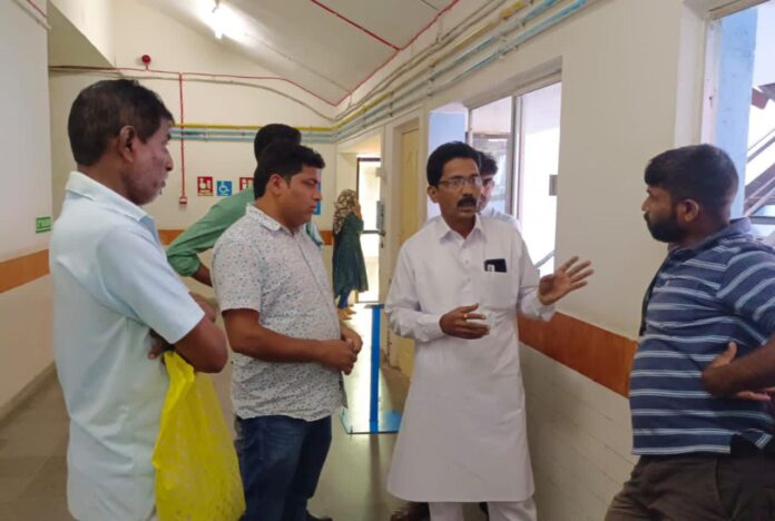 मालवण | प्रतिनिधी : विजेचा धक्का लागून गंभीर जखमी झालेल्या कुडाळ येथील कर्मचारी धनंजय फाले यांच्यावर गोवा बांबुळी येथे उपचार सुरु आहेत. कामगार नेते अशोक सावंत यांनी गोवा बांबुळी येथे जाऊन जखमी धनंजय यांची विचारपूस करत धीर दिला. तसेच नातेवाईकांशीही चर्चा केली.