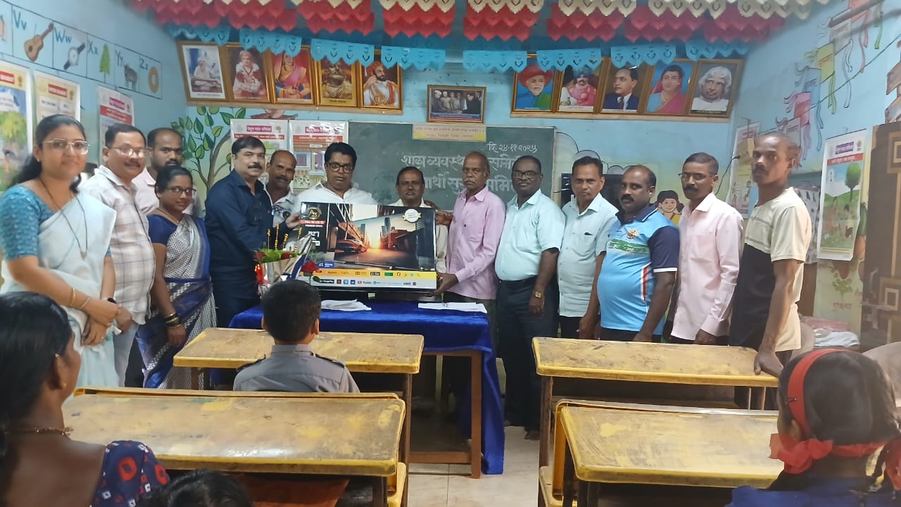 देणगी स्वीकारताना शाळा व्यवस्थापन समिती पदाधिकारी,ग्रामस्थ,पालक ,शिक्षक शिक्षकांची नावे श्री.प्रदीप कदम,श्री.संकेश गायकवाड,श्री.राजेश पवार