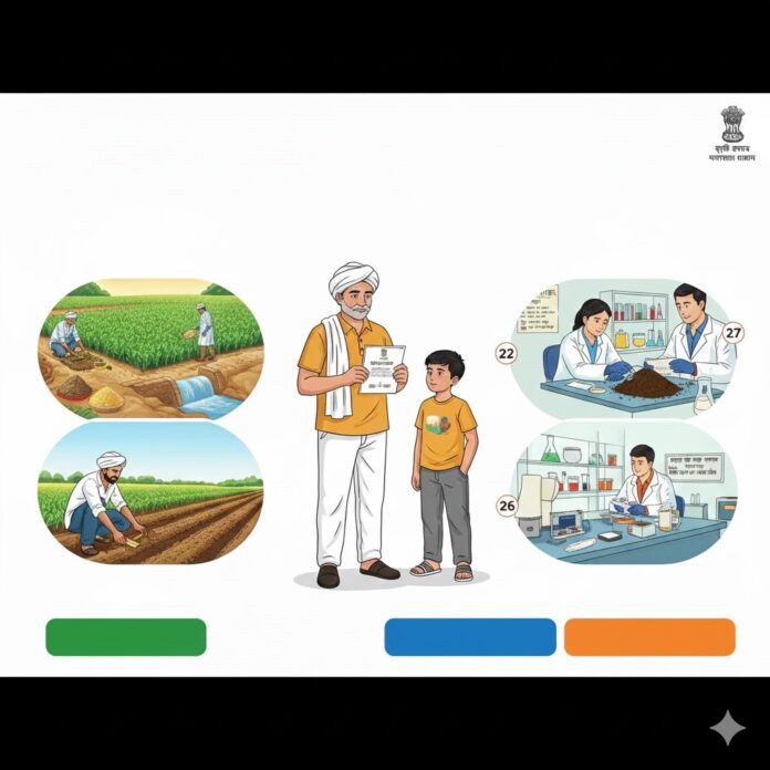 भारत सरकार व राज्य शासनाने राष्ट्रीय कृषि विकास योजना जिल्ह्याला भरीव लक्षांक देऊन जमीन आरोग्य पत्रिका वितरण योजना सन २०२५-२६ शासकीय अनुदानातून २४००० चे लक्षांक देण्यात आले आहेत. सन २०२३-२४ मध्ये ४५०० व सन २०२४-२५ वर्षी ६७२० माती नमुने लक्षांक पूर्ण केला, याचे जमीन आरोग्य पत्रिका शेतकऱ्यांना वितरण केले. या वर्षी ६७८५ जमीन आरोग्य पत्रिका तपासणी पूर्ण झाली. महाराष्ट्र शासनाच्या कृषि विभागामार्फत सर्व तालुक्यातील शेतकऱ्यांचे शेतातील प्रतिनिधी स्वरुपात मृदा नमुने घेऊन प्रयोगशाळेत माती परीक्षण करून खताचा योग्य प्रमाणात वापर केला जातो. त्यामध्ये पिकांची अन्नद्रव्ये घेण्याची क्षमता मातीचा प्रकार पाहून योग्य प्रमाणात खत दिले जाते. त्यामुळे उत्पादनात वाढ दिसून येते.