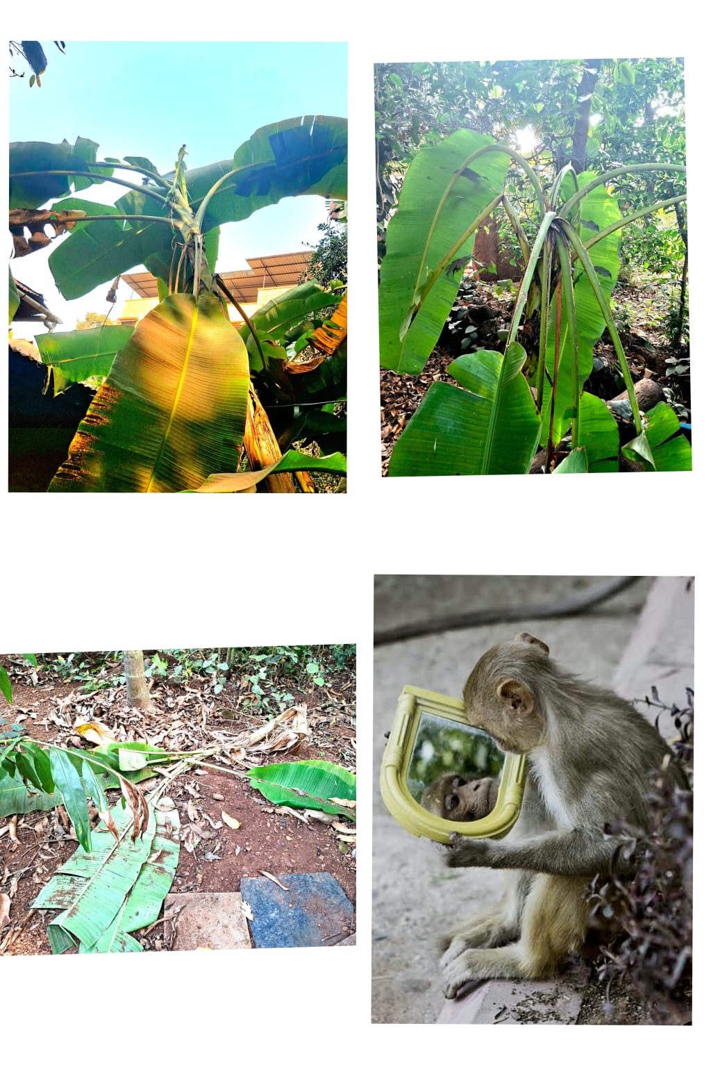 यांच्या घराच्या पडवीत असणाऱ्या बेसिन वरील आरसे दोन वेळा पळवण्या चा विक्रम या माकडांनी केला आहे. तर घरात शिरून घरातील पदार्थ पळवणे आणि बागेतील केळीच्या झाडांची पूर्णतः नासधूस करणे आणि शहाळी काढून पाणी पिऊन खाली फेकून देण्याचा उपक्रम या माकडांनी सुरू केला आहे. यामुळे मेहनतीने पिकविलेल्या बागेचे नुकसान होत आहे.