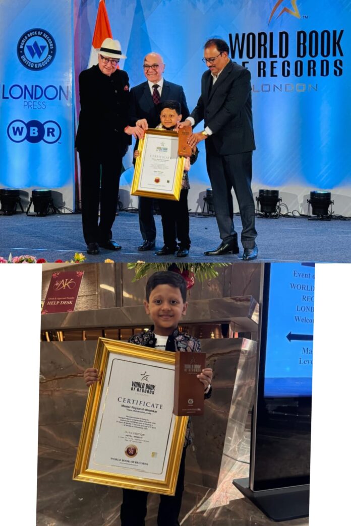 लांजा -: तालुक्यातील आरगावचा सुपुत्र, बाल जलतरणपटू रेयांश खामकर यांच्या दमदार कामगिरीची नोंद वर्ल्ड बुक ऑफ रेकॉर्डस, लंडन या संस्थेने घेतली असून इंदोर (मध्य प्रदेश) येथे झालेल्या शानदार सोहळ्यात रेयांशला मानपत्र देऊन सन्मानित करण्यात आले