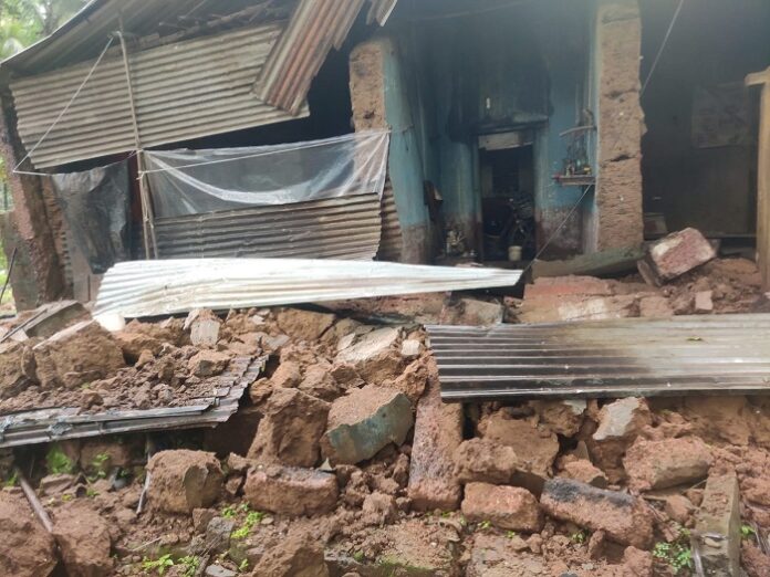 मालवण | प्रतिनिधी : मालवण तालुक्यात मुसळधार पावसाचा कहर सुरूच आहे. त्यामुळे पडझडीच्या घटना वाढत आहेत. बुधवारी रात्री दांडी दुधवडकरवाडी येथील तोंडवळकर कुटुंबीय राहत असलेल्या घराच्या भिंती कोसळल्या. यावेळी भिंतीचा काही भाग अंगावर पडल्याने गुरू महेश तोंडवळकर हा मुलगा जखमी झाला आहे.भिंती कोसळल्या त्यावेळी गुरू याची आई सोनाली महेश तोंडवळकर व गुरू हे घरात होते. गुरू याच्या अंगावर भिंतीचा काही भाग कोसळल्याने तो जखमी झाला. नागरिकांनी त्याला तात्काळ रुग्णालयात दाखल करण्यात आले होते.गुरुवारी तलाठी पासते व महसूल कर्मचारी यांनी नुकसानीचा पंचनामा केला.
