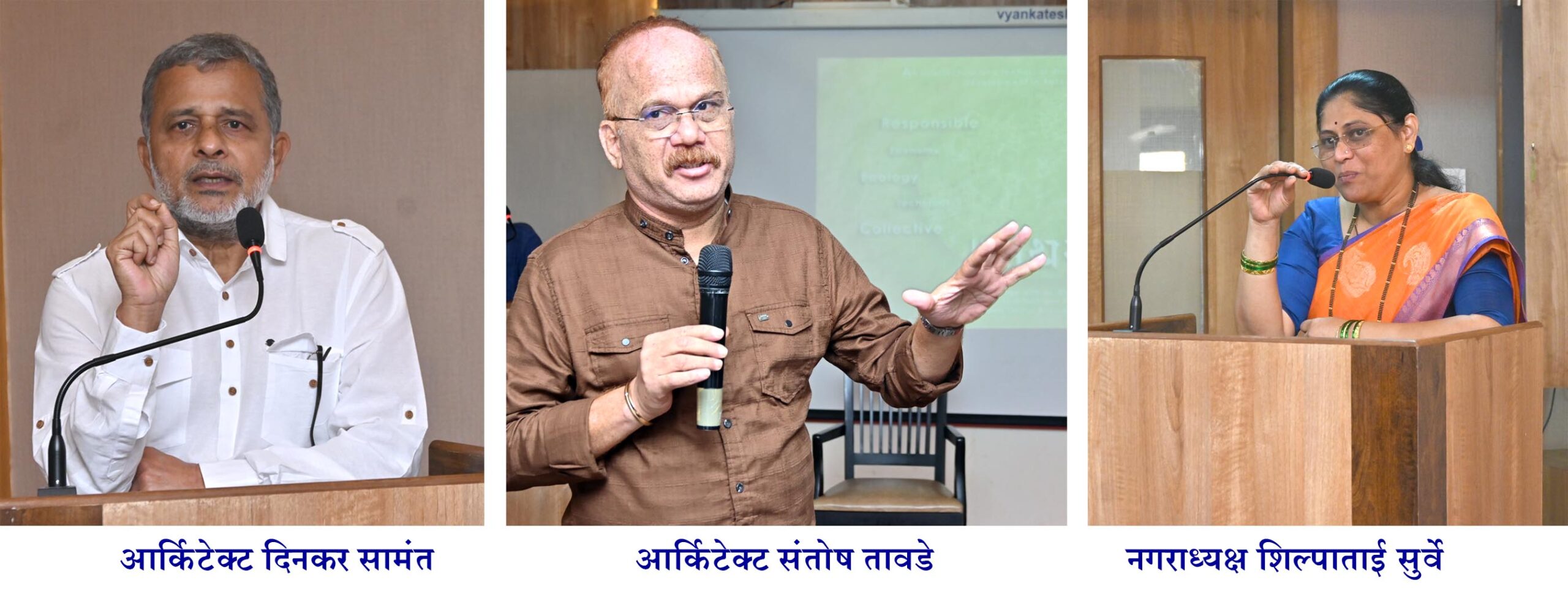 ठळक व महत्त्वाच्या इमारती, रेल्वे स्थानके, बसस्थानके, हॉटेल्स, सार्वजनिक इमारती, मंदिरे, आणि पर्यटन क्षेत्रे याबाबत सविस्तर शिफारशींचा अहवाल आर्किटेक्ट्स व सुजाण नागरिकांच्या मदतीने तयार करावेत. हा अहवाल एडीटीपी / नगररचना संचालक, नगरविकास विभागाचे सचिव कार्यालय, जिल्हाधिकारी कार्यालय, जिल्हा परिषदेचे मुख्य कार्यकारी अधिकारी, तसेच नगरपालिका आणि पालकमंत्री व आमदार यांच्याकडे सादर करावा. तसेच आयआयएमार्फत परिसंवाद आणि कार्यशाळा आयोजित करा आणि प्रत्येक कामाचा पाठपुरावा करावा, अशी सूचना आर्किटेक्ट दिनकर सामंत यांनी केली.