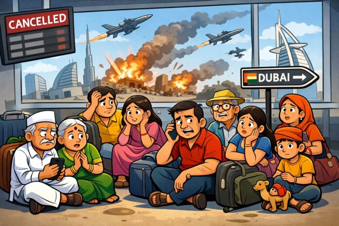 रत्नागिरी | प्रतिनिधी अमेरिका-इस्राएल विरुद्ध इराण यांच्यात निर्माण झालेल्या युद्धजन्य परिस्थितीचा मोठा फटका आंतरराष्ट्रीय हवाई वाहतुकीला बसला आहे. इराणने आखाती देशांतील काही शहरांवर केलेल्या हल्ल्यांमुळे रत्नागिरी जिल्ह्यातील दुबई व अन्य आखाती देशांत फिरण्यासाठी आणि कामानिमित्त गेलेले १२ प्रवासी अडकून पडले आहेत. हे सर्व प्रवासी सध्या सुखरूप असल्याची माहिती प्रशासनाने दिली असली, तरी त्यांच्या परतीचा मार्ग अद्याप स्पष्ट झालेला नाही.