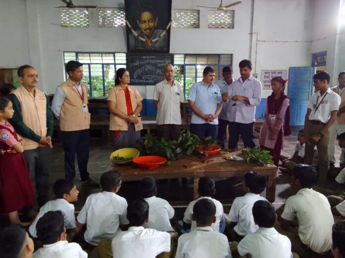 माखजन |वार्ताहर : संगमेश्वर तालुक्यातील माखजन पंचक्रोशी शिक्षण प्रसारक मंडळाच्या माखजन इंग्लिश स्कूल येथे आंबा कलम बांधण्याचे प्रात्यक्षिक घेण्यात आले.प्रशालेतील प्रत्येक विद्यार्थ्यांना आंबा ,काजू कलम बांधता याव यासाठी हा उपक्रम हाती घेण्यात आला आहे.यावर्षी आंब्याच्या विविध जातीची ५०० कलमे बांधण्याचा संकल्प करण्यात आला आहे. यामध्ये संस्थेचे संचालक कुलदीप भागवत यांनी कलम बांधणी प्रात्यक्षिक दाखवले व विद्यार्थ्यांना कलम बांधणी विषयी सगळी माहिती दिली.व विद्यार्थ्यांकडून कलमे बांधून घेतली.यावेळी रत्नागिरी हापूस,नीलम,केशर,तोतापुरी आदी विविध जातीच्या काड्या घेऊन कलम बांधणी करण्यात आली.बाटा कलम प्रात्यक्षिकावेळी शाळेच्या मुलांसह, गुरुकुल पूरक उपक्रमामध्ये सहभागी असलेली मुले उपस्थित होती.यावेळी संस्थेचे अध्यक्ष आनंद साठे यांनी स्वतः कलम बांधून विद्यार्थ्यांना मार्गदर्शन केले.माखजन हायस्कुल मधून बाहेर जाणाऱ्या विद्यार्थ्याला आंबा,काजू कलम बांधता यायला हवे ,अशी भूमिका डोळ्यासमोर ठेऊन हा उपक्रम राबवत असल्याचे अध्यक्ष आनंद साठे यांनी सांगितले.या वेळी संस्था सचिव राजेश फणसे,दत्ताराम गुरव,मुख्याध्यापिका सौ रुही पाटणकर,हरित सेना प्रमुख विठ्ठल भोईर,गुरुकुल विभाग प्रमुख सचिन साठे,महादेव परब,चंद्रकांत चाचे,ओंकार नामजोशी,आदी उपस्थित होते.यावेळी आभार गौरव पोंक्षे यांनी मानले.