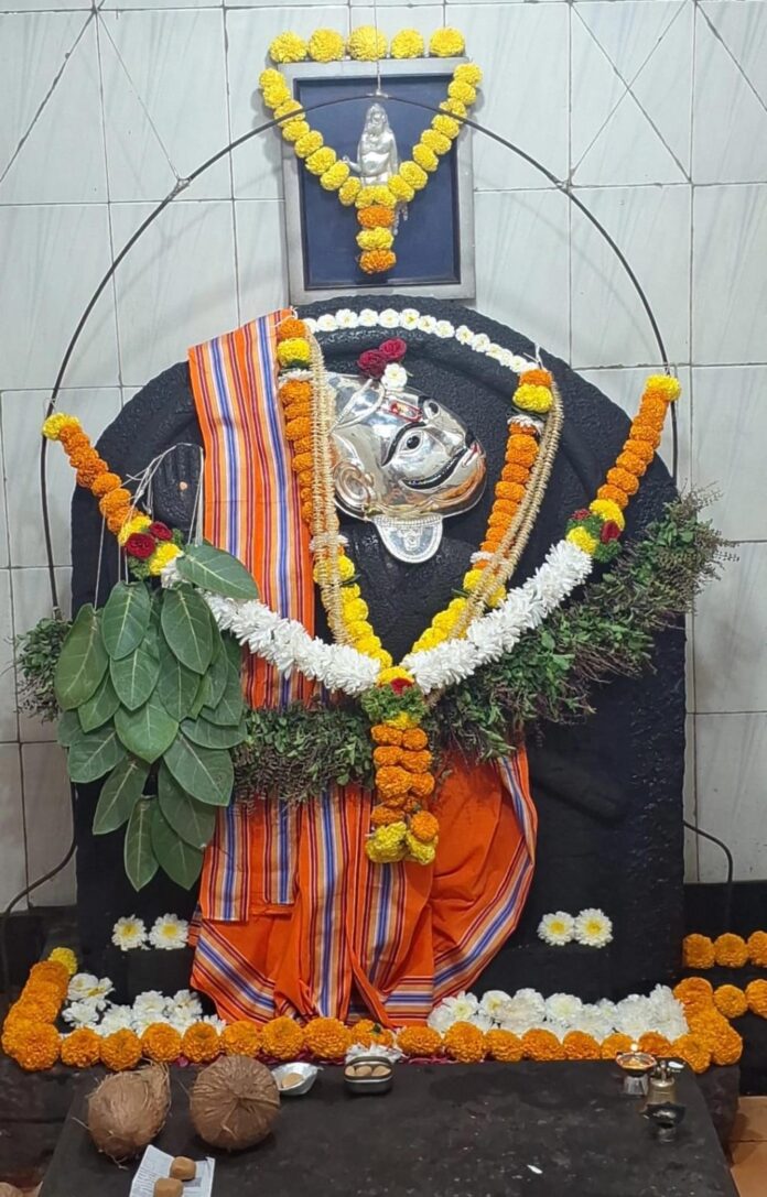 गुढीपाडव्याच्या शुभ मुहूर्तावर ‘ मालपेकर ज्वेलर्स’ ते समर्थ नगर मारुती मंदिरापर्यंत या नवीन मुखवट्याची सवाद्य पालखी मिरवणूक काढण्यात आली. ढोल-ताशांच्या गजरात निघालेल्या या मिरवणुकीने भाविकांचे लक्ष वेधून घेतले.